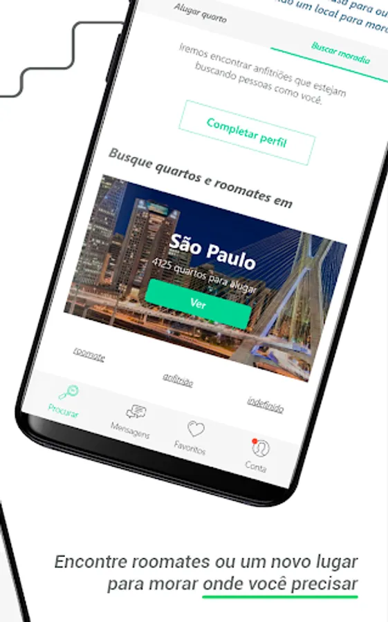 If you are looking for a place to live, simply create your roommate profile in the app, define the characteristics of the place you are looking for, as well as the person you would like to live with. We'll select advertisers who are offering rooms that match you directly.