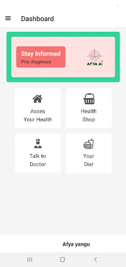 This App help you to make quick assessment of yourself and identify the risk of developing high blood pressure or high blood sugar. It also provides a personalized meal plan that fits you according to the assessment make. It connects you with hotels and food sellers who will deliver to you cooked or uncooked meal according to your meal plan suggested by the App after making assessment on your health.