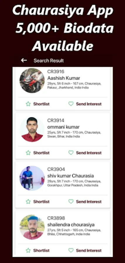 Chaurasiya Rishtey is a Matrimonial Platform for the Chaurasiya community all over the world, where users can find Chaurasiya bride, the bridegroom of their particular choice. It includes all the Gotras of Chaurasiya Samaj.
