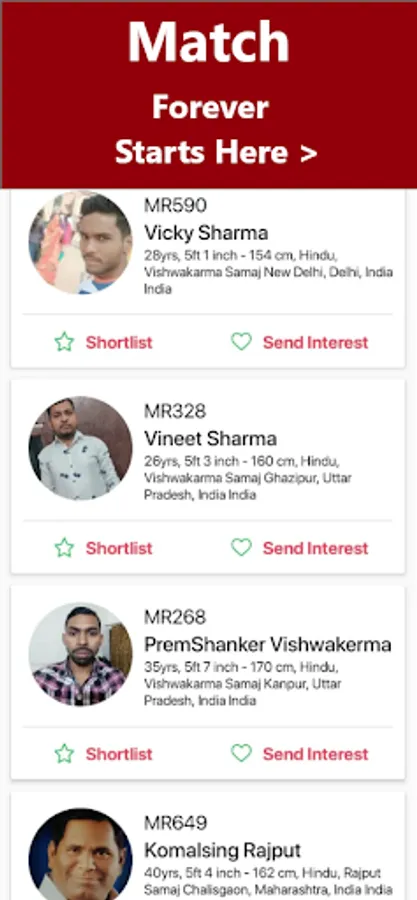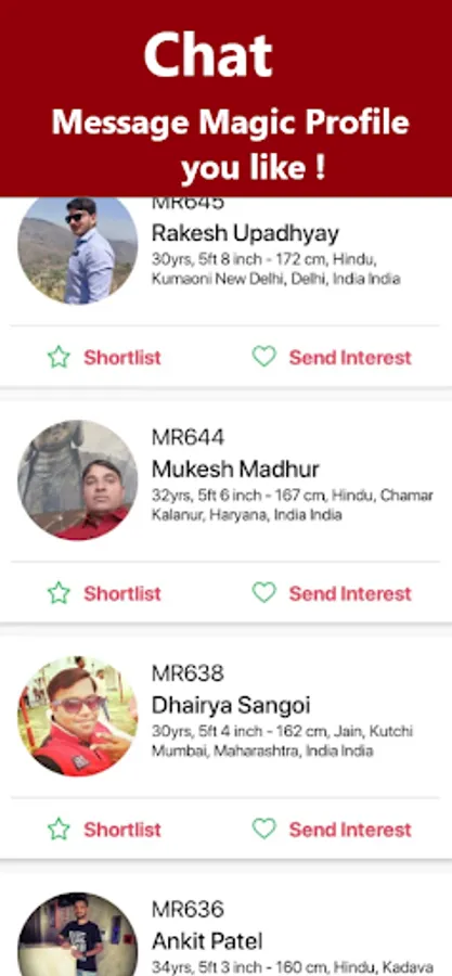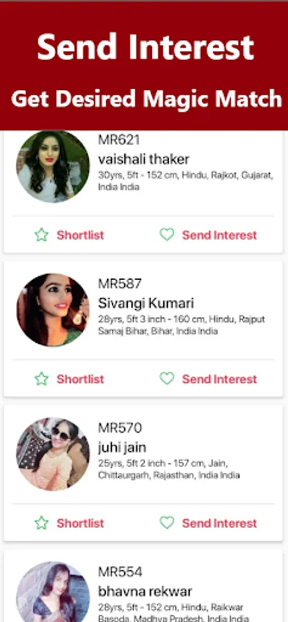 You can search different profiles from all the caste - Agrawal Marriage Profiles, Jain Marriage Profiles, Rajput Marriage Profiles, Khandelwal Marriage Profiles, Brahmin Marriage Profiles, Maheshwari Marriage Profiles all community profiles are available on the app.