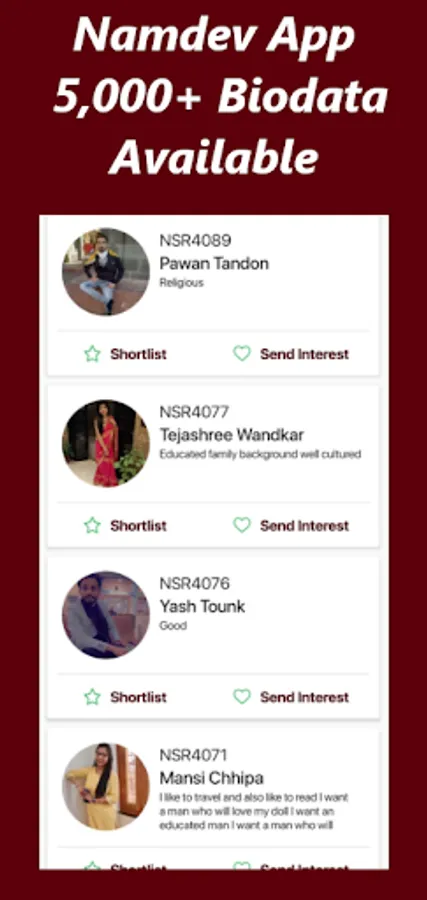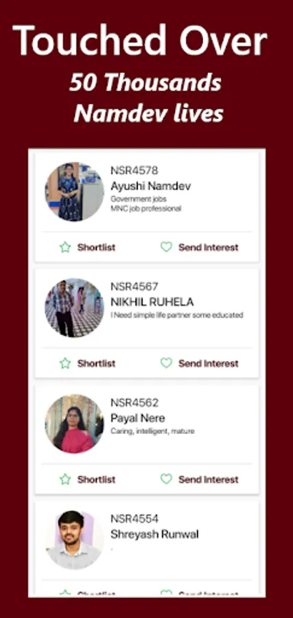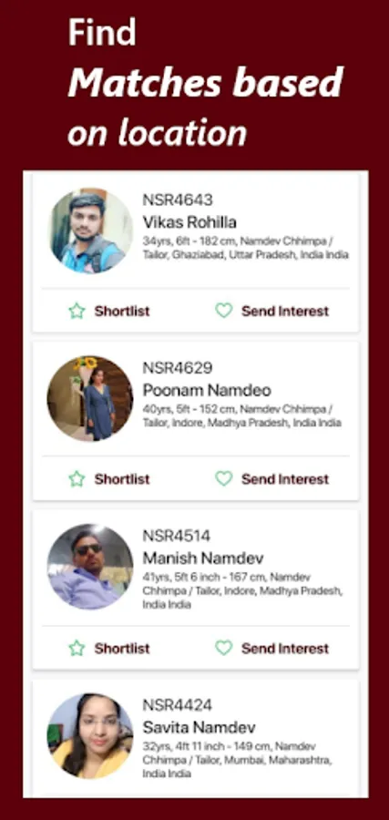Namdev Rishtey is a Matrimonial Platform for the Namdev community all over the world, where users can find Namdev bride, the bridegroom of their particular choice. It includes all the Gotras of Namdev Samaj.