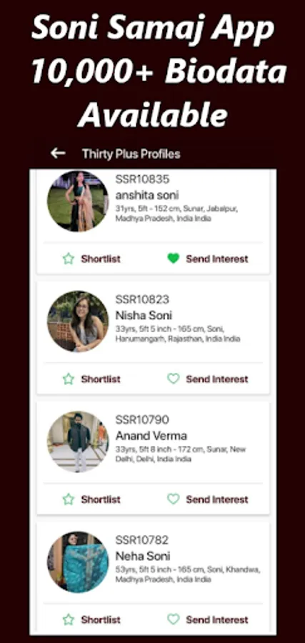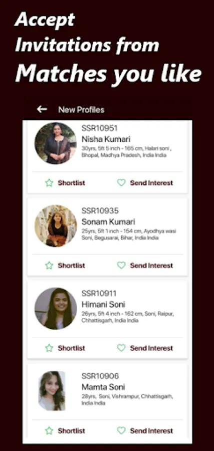 We had put all the advanced filters to make it user-friendly in order to get your desired Soni life partner. You can search for a Soni partner from different education, profession, age, marital background, etc.