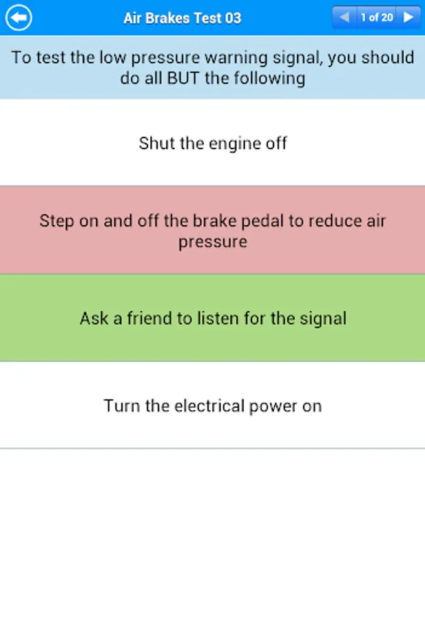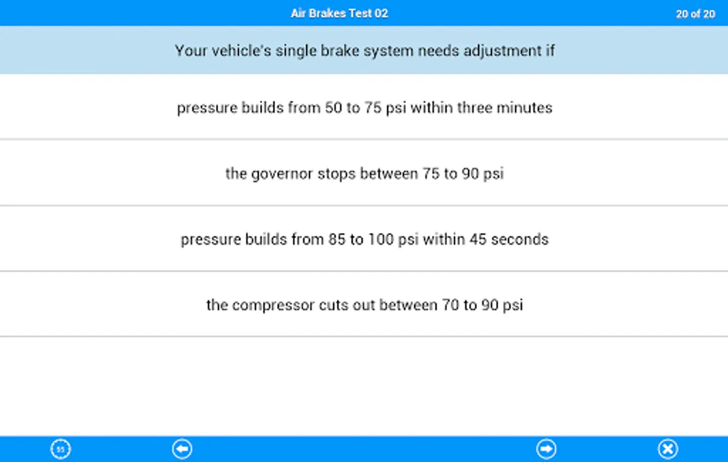Air Brakes Test simulates the written test and at the end presents you a detailed score.