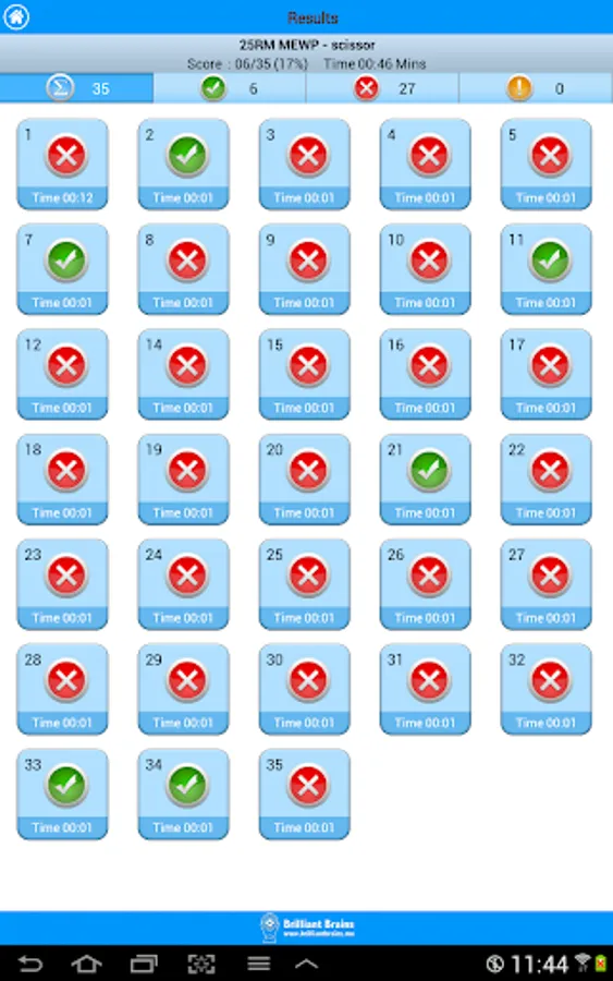A summary of the practice test is presented at the end of each test. It shows you the time you took, the score, which questions you answered correctly and where you were wrong. And yes, you can E-MAIL the results.