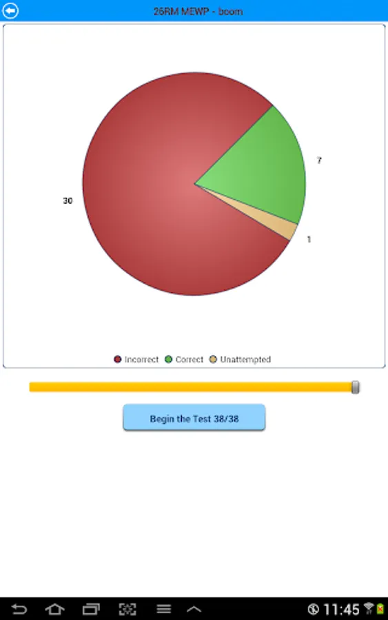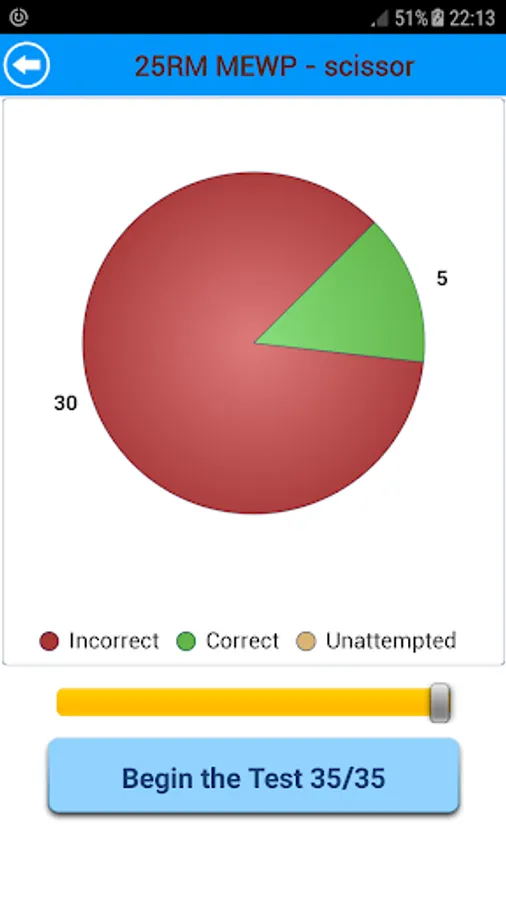 The app records your progress as you start giving practice tests.