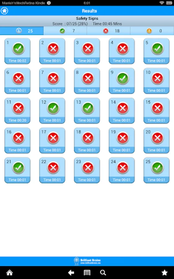 A summary of the practice test is presented at the end of each test. It shows you the time you took, the score, which questions you answered correctly and where you were wrong. And yes, you can E-MAIL the results.