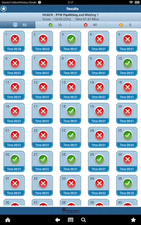 A summary of the practice test is presented at the end of each test. It shows you the time you took, the score, which questions you answered correctly and where you were wrong. And yes, you can E-MAIL the results.