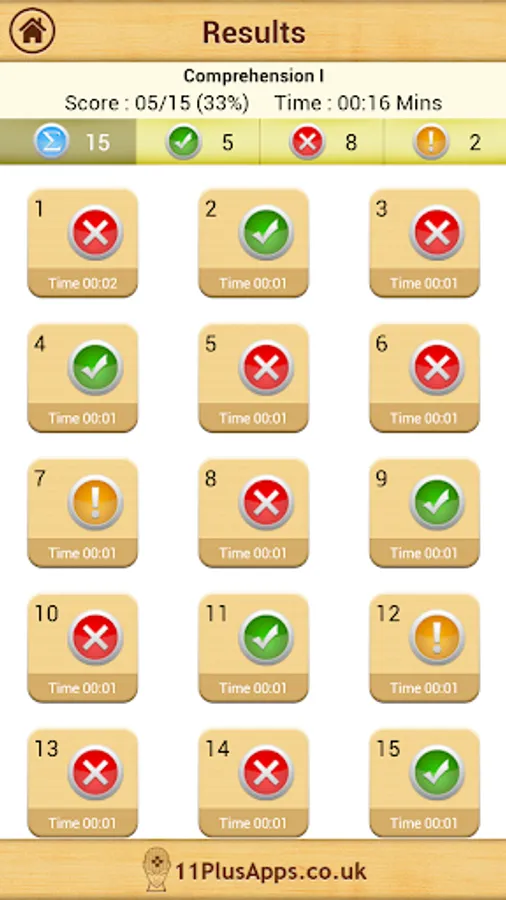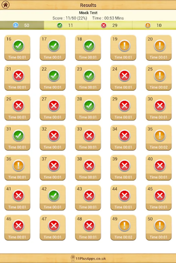 On the completion of each test the user is given a summary of questions answered correctly, incorrectly and skipped along with the time taken on each question. Every question can be reviewed and all questions have an explanation of the answer.