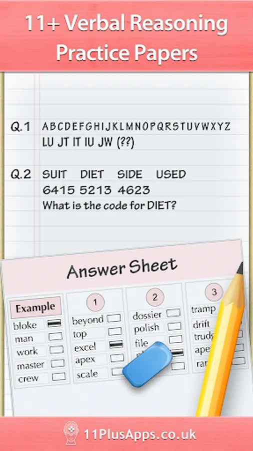 This app is one of the apps in 11+ apps series published by 11PlusApps.co.uk with comprehensive material and innovative design that make 11+ exam preparation a fun.