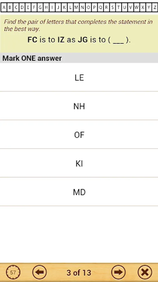 After you have practiced all types of questions, you can take a Mock Test with 80 questions. The Mock Test has questions selected randomly from each topic. Scores for the mock tests taken in the past are displayed in a bar chart. This is a great way to track how you are progressing in mock tests. There is no limit on how many mock tests you can take.