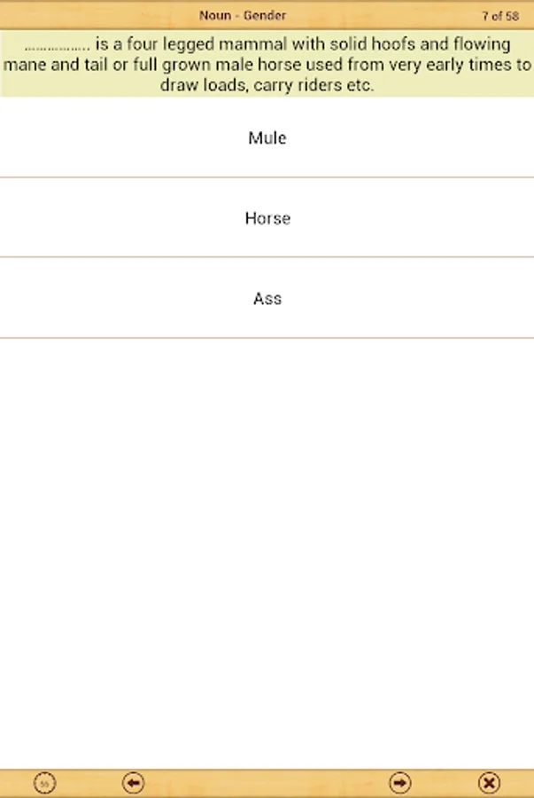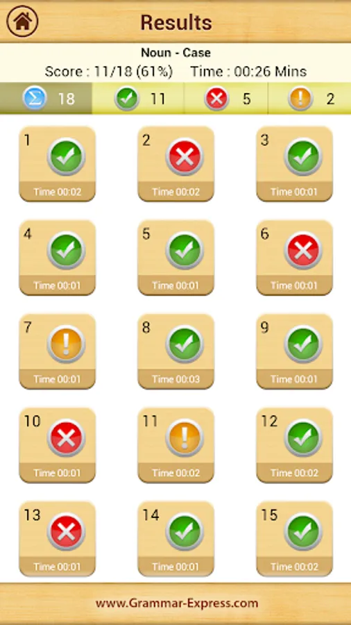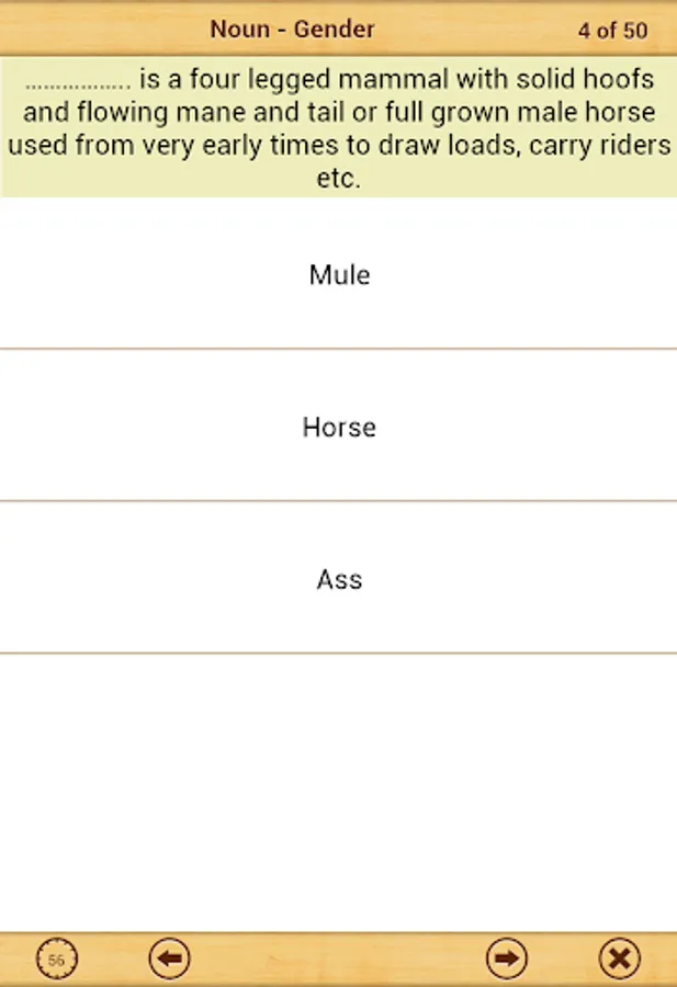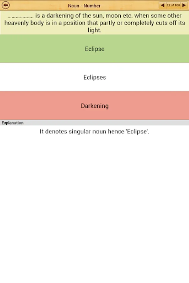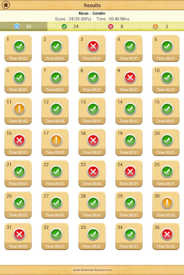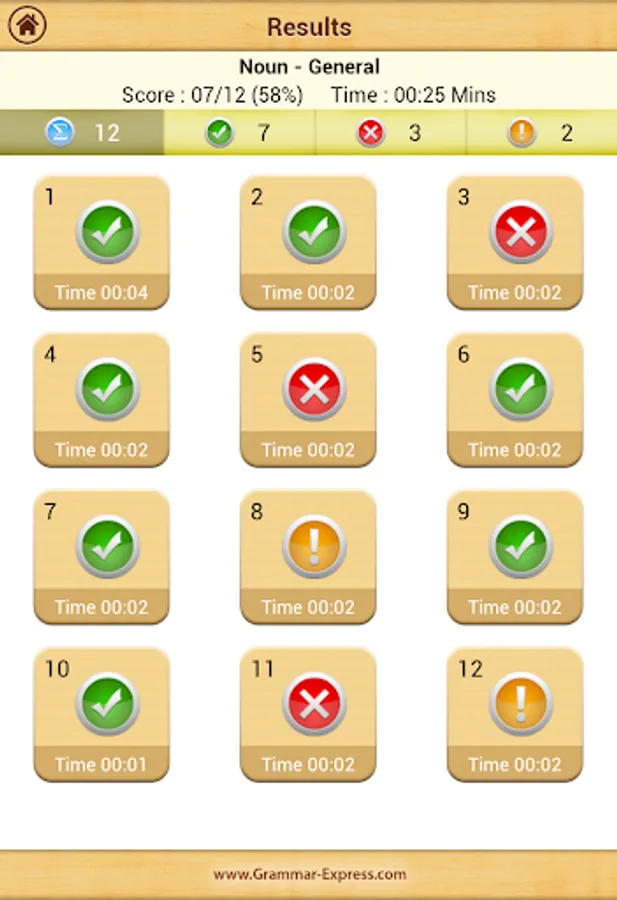 Grammar Express: Nouns is the complete course in mastering the kinds of noun such as common noun, proper noun, collective noun, material noun and abstract noun. It contains over 48 pages of lessons explaining Noun-Number, Gender and Case with several examples. You can learn the grammar rules, study the examples and test their understanding by taking quiz. At the end of quiz the user is presented with test summery and explanation for each test question. Grammar Express can help you to improve your understanding of kinds of noun and their classification into concrete and abstract noun. Custom timer setting can assist you to improve response times under exam time constraints. Research suggest that kids and adults learn most quickly when playing learning games with real-time error-feedback. Grammar Express provides learners with an opportunity to improve strategies for grammar success.