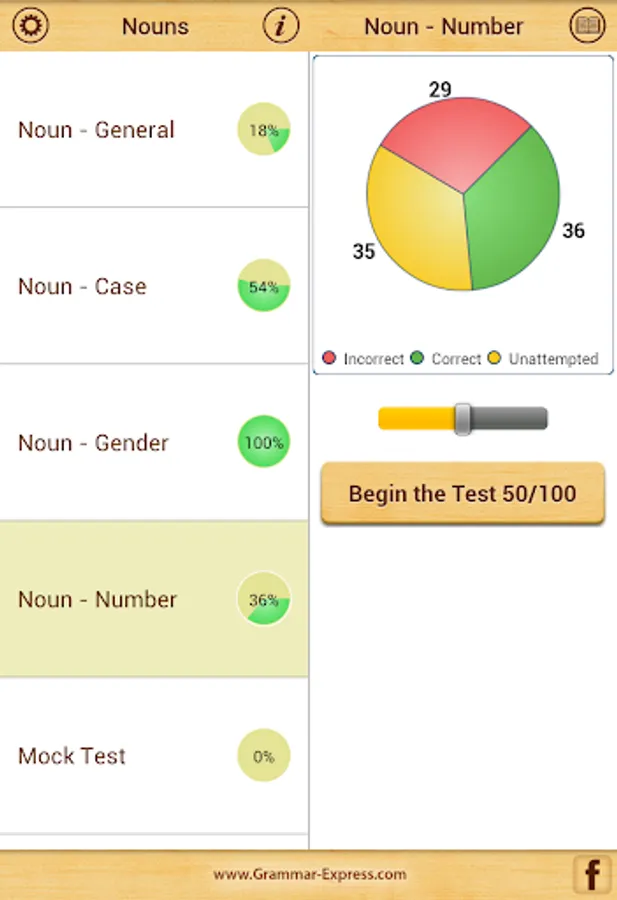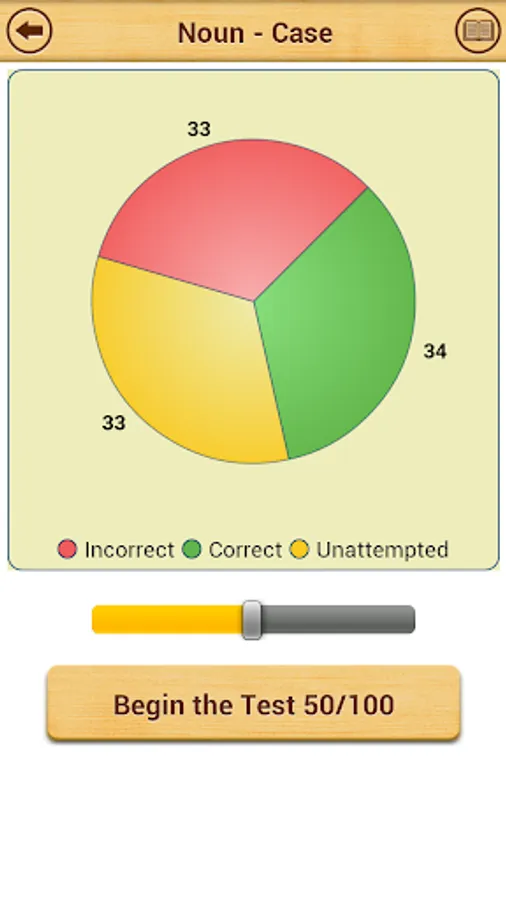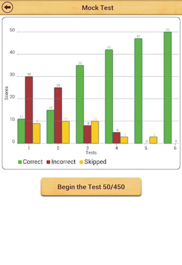The app records your progress as you start giving practice tests.