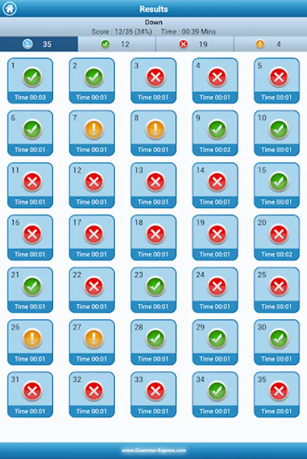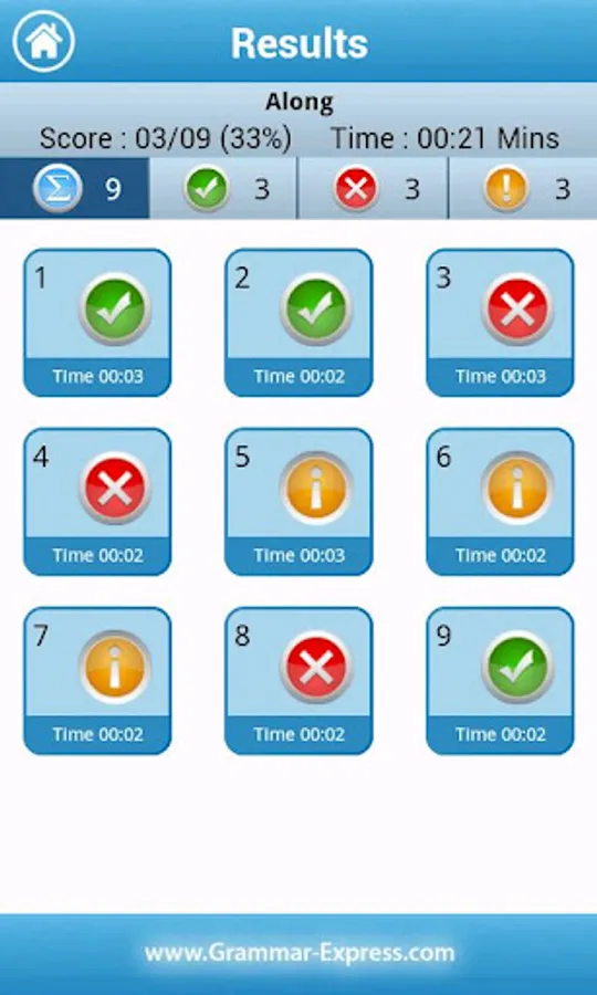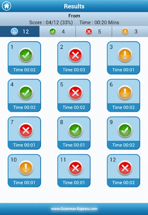 You can study the grammar rules by topic. All questions are sorted by topic.