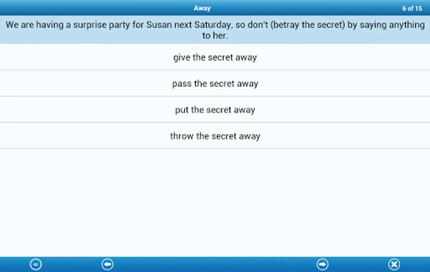 Phrasal verbs are very common in spoken and written English so we need them to understand. This app helps you with just that.