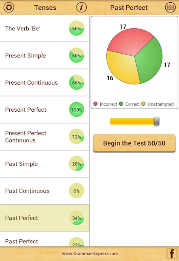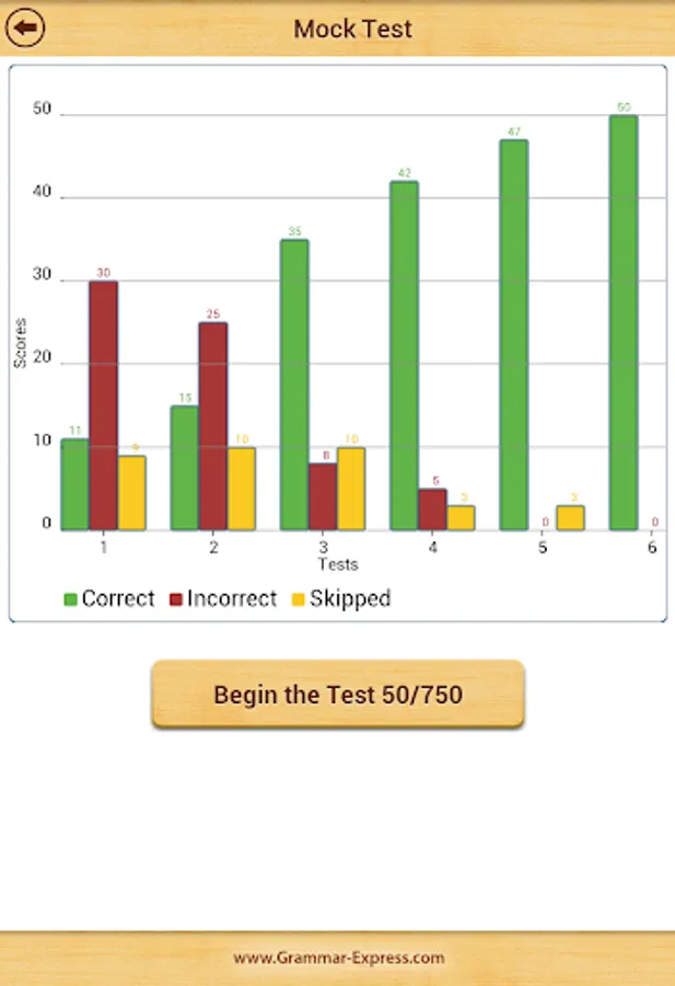 The app records your progress as you start giving practice tests.