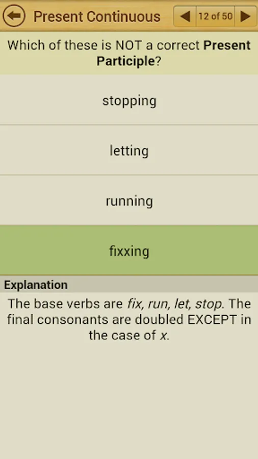 At the end of each quiz the user is presented with test summary and explanation.