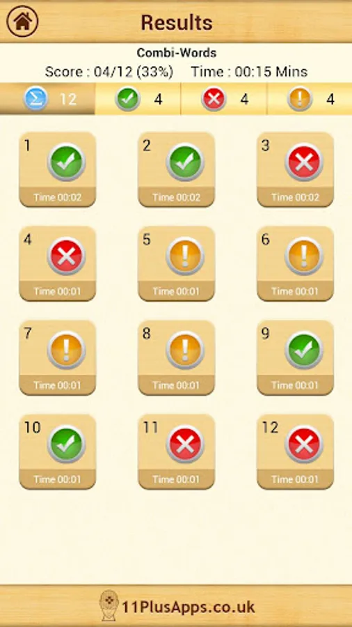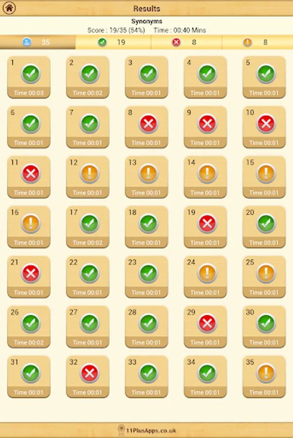 On the completion of each test the user is given a summary of questions answered correctly, incorrectly and skipped along with the time taken on each question. Every question can be reviewed and all questions have an explanation of the answer.