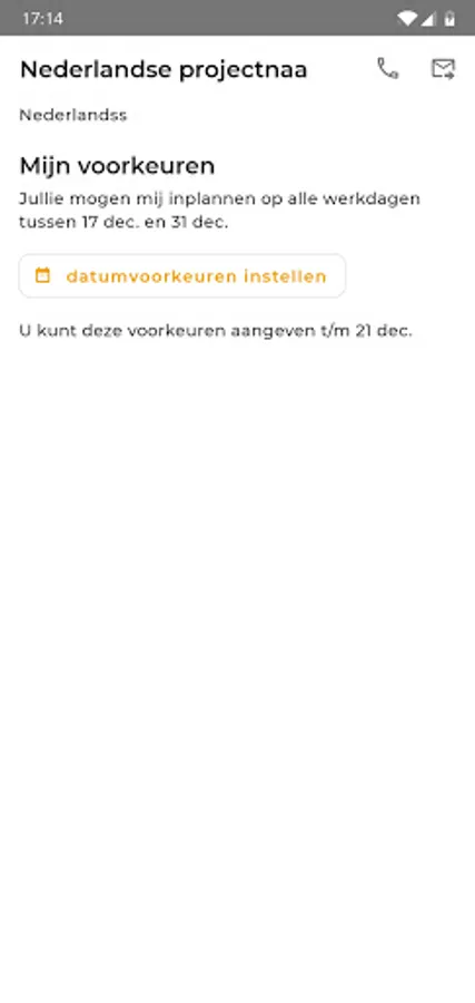 With Noom Communicatie you can easily indicate your preferences so that we can schedule you. You will also receive a message when you are scheduled and later the schedule in the app.