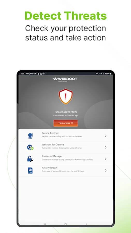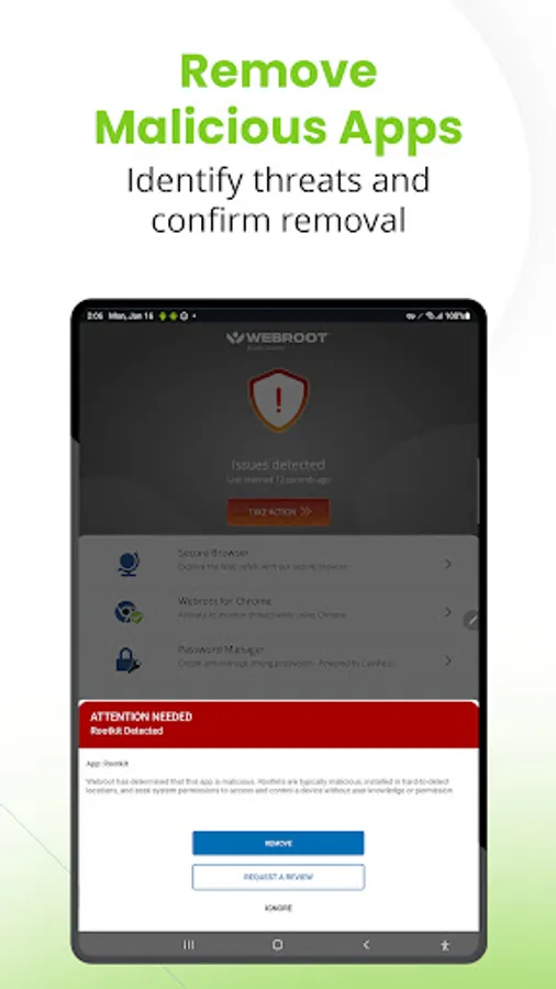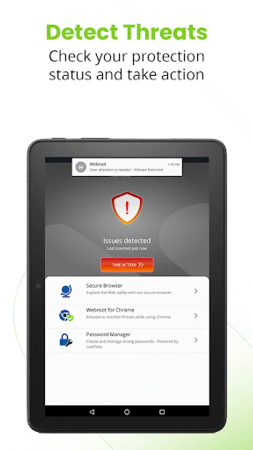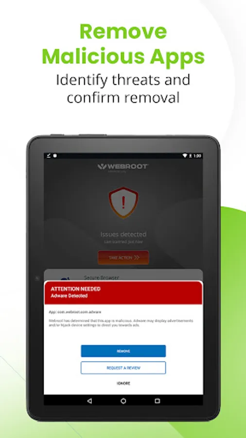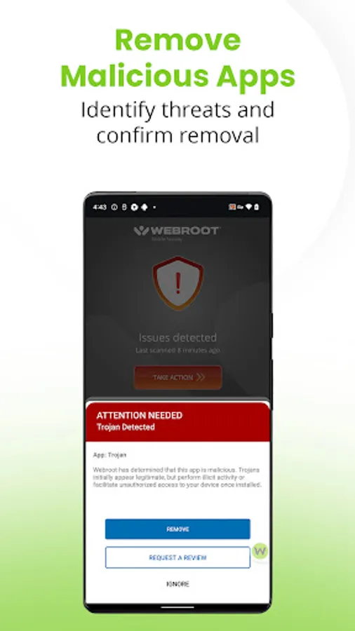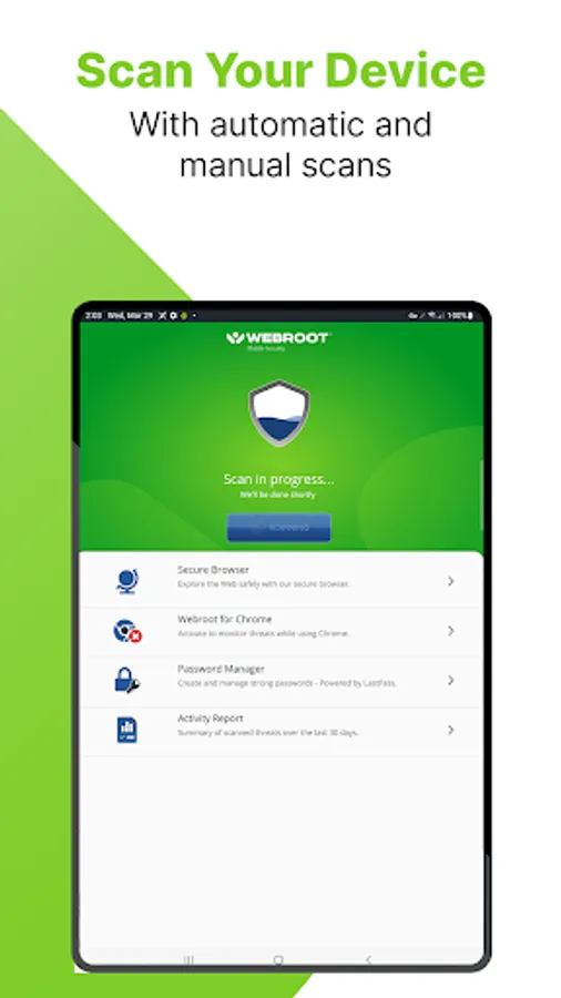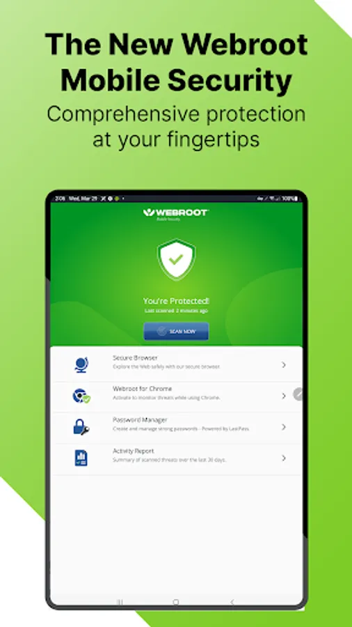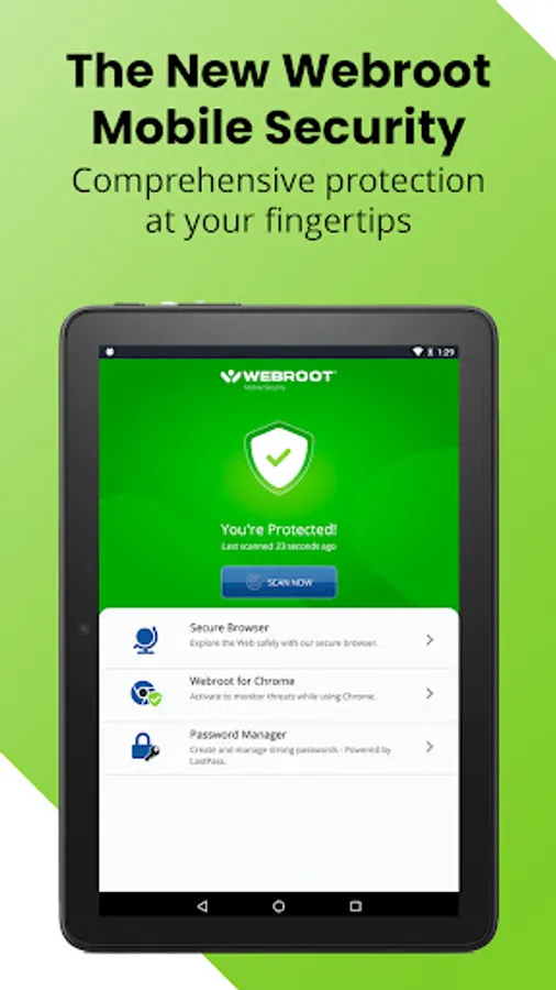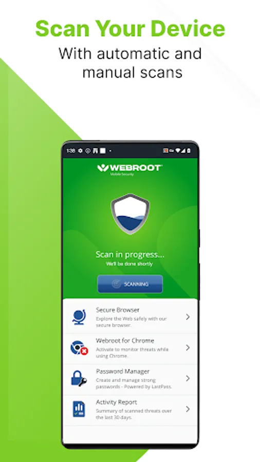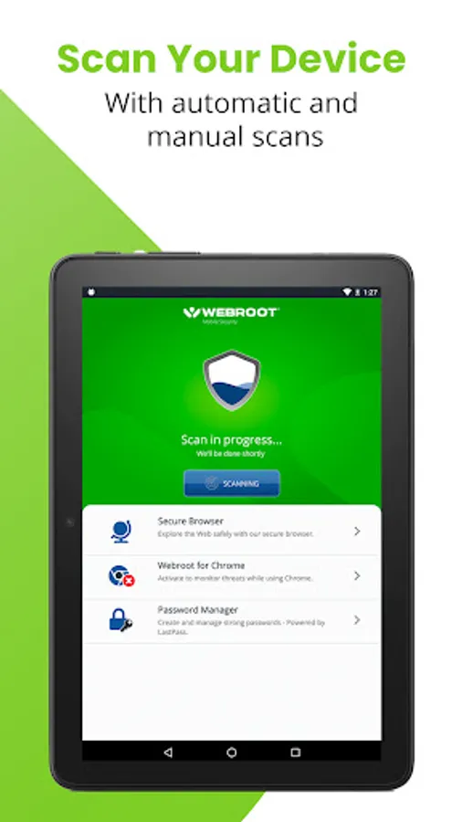 SET IT and FORGET IT while Webroot Mobile Security keep you safe by automatically scanning mobile apps for malware and viruses.