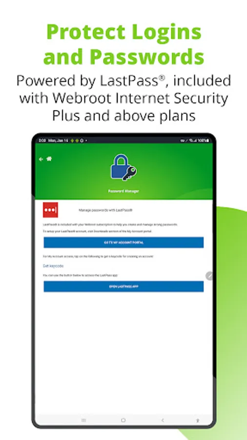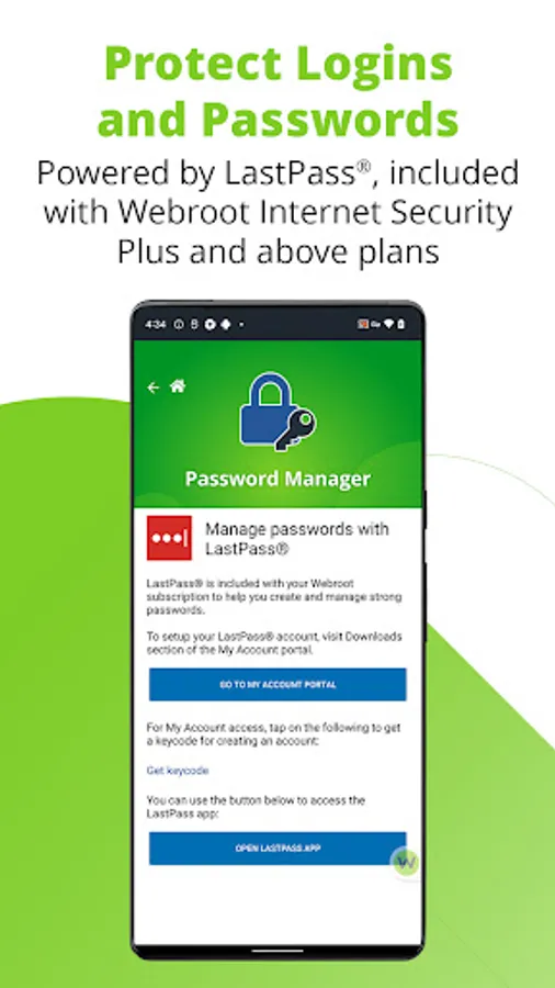Included with Webroot Internet Security Plus and above plans, our password manager will enable you to use strong and unique passwords, all stored in a secured environment - Powered by LastPass.
