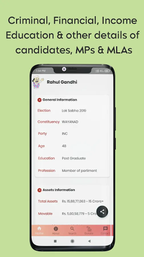 This app is provided by Association for Democratic Reforms (ADR) which is well known as provider of unbiased information on electoral candidates.