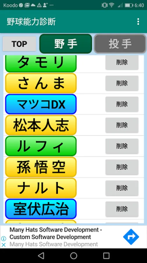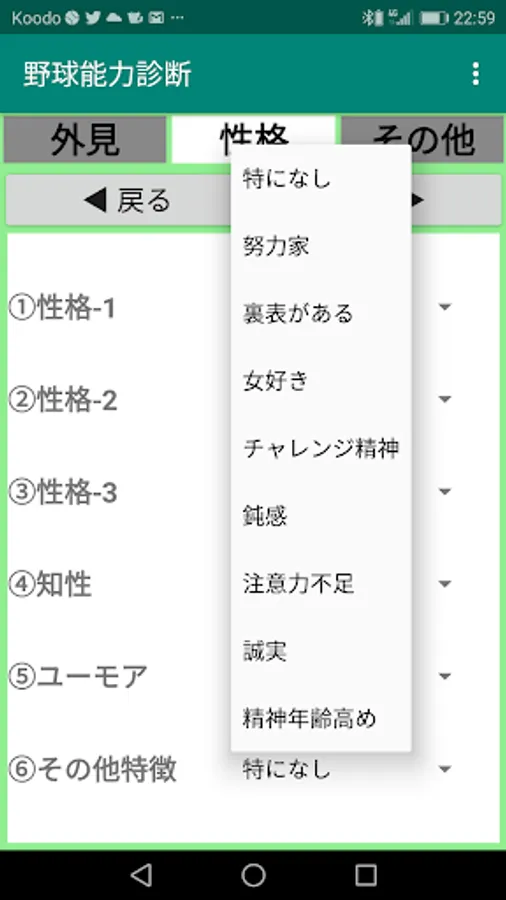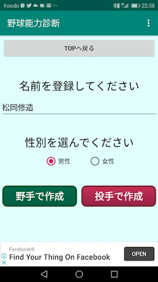 It is a play app that inputs various characteristics of people who are not playing baseball and makes them status like a power professional.