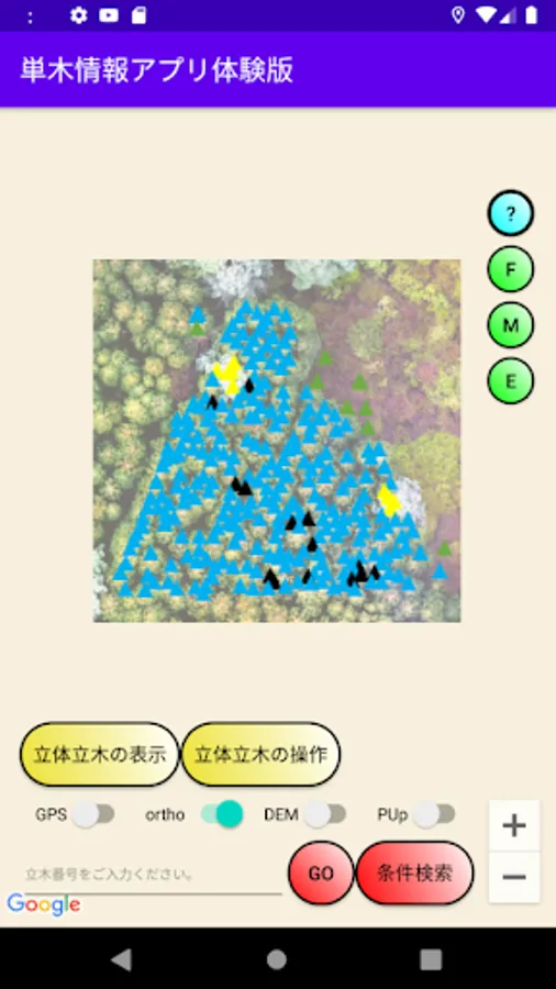 Also, when you are in the office or laboratory, you can check the standing tree information on the GIS of your computer, but when you go to the site, you have to rely on the map. Even if I was in the field with my smartphone, I thought that if I could check the state of the housing complex and information on standing trees, the work at the site would be more efficient, so I worked on creating an app for forest management and training.