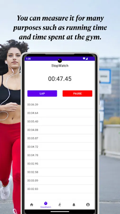 There is also a stopwatch function, so you can measure the time you are running or at the gym (with lap function)