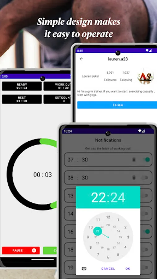 You can customize the time that suits you by setting "preparation time", "exercise time", "rest time", and "number of sets".