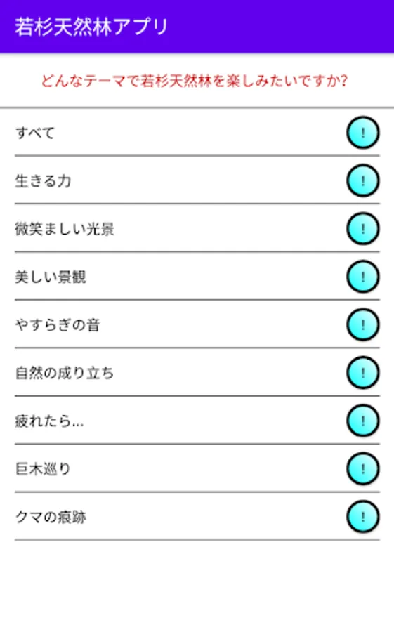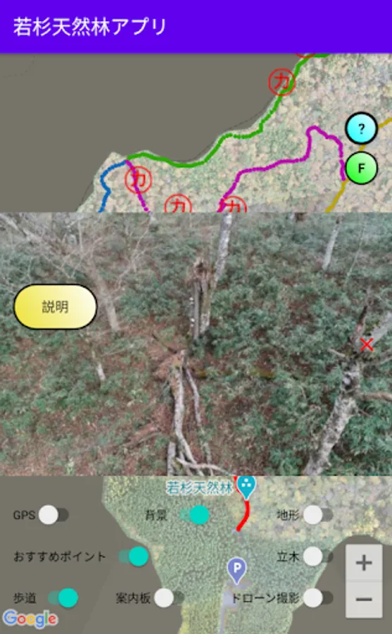 Wakasugi Natural Forest is located in Nishiawakura Village, Okayama Prefecture, and has an area of 83ha. Beech and natural cedar are distributed, and it forms a rich ecosystem such as Quercus crispula, Betula grossa, and Magnolia obovata. There is a promenade in the natural forest, and this app will pick up and guide you to points that you would normally overlook along the promenade. Recommended points are organized by theme.