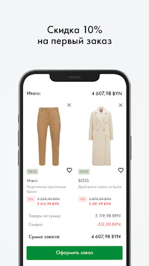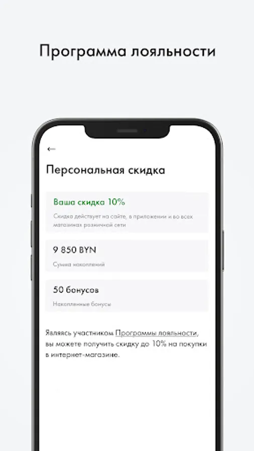Install the application of the online clothing store in Belarus FH.BY and get an individual 10% discount on your first order (5% on discounted goods). Each time you place an order through the app, you will be able to receive an additional 1% discount.