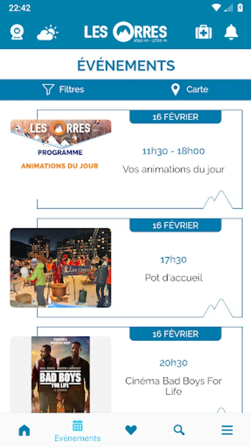 Then, to make getting around the resort easier, you will find the shuttle timetable, an interactive map of the commune, a map of the slopes, geolocalised car parks and of course all the services, activities, shops and events that you won't want to miss!