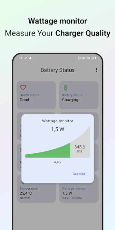 * Discover if your device is charging or discharging and what type of charge it has: USB, wireless charging pad, or power adapter: With our Android battery app, you can know at all times whether your device is charging or discharging.