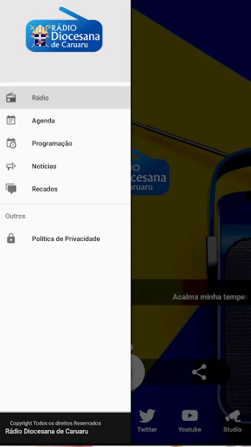 In it you can check and listen to the radio programming, see news from the Diocese of Caruaru, leave your messages and watch WebTV Diocesana, in Stúdio. You can also find the social networks of the Diocese and the Radio.
