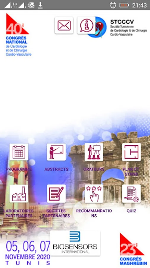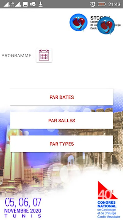 This application provides all the information around the events of the STCCCV - Tunisian Society of Cardiology and Cardiovascular Surgery.