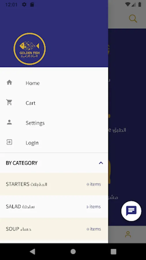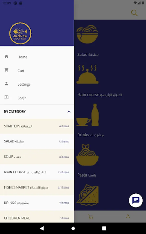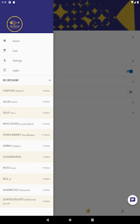 This app is for ordering food online. It belongs to Golden Fish restaurant in Bahrain.