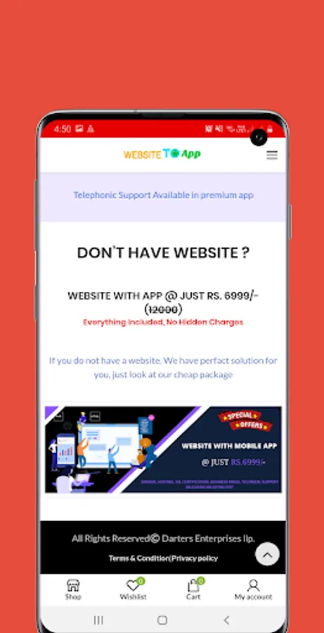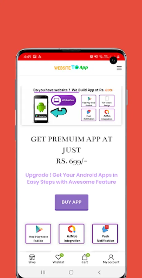 Website To App help you can create andriod application in a minute without source coding and distribute your new app. Also, we provide ‘Push notiification and Admobs service function’ for free which can send notification message.