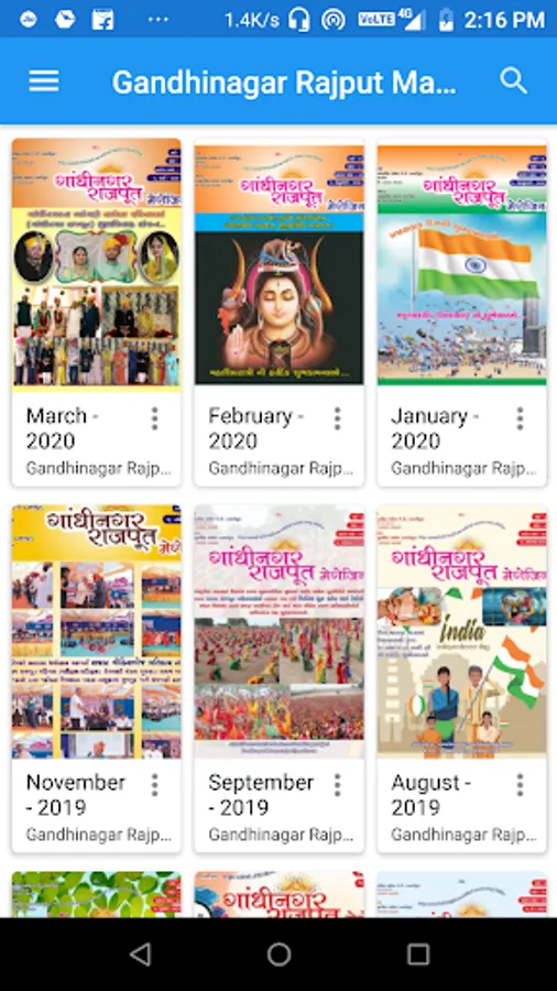 Gandhinagar Rajput Magazine generally contains essays, stories, poems, articles, fiction, recipes, images etc. Gandhinagar Rajput Magazine are directed at general and special audience, often published on a monthly basis.