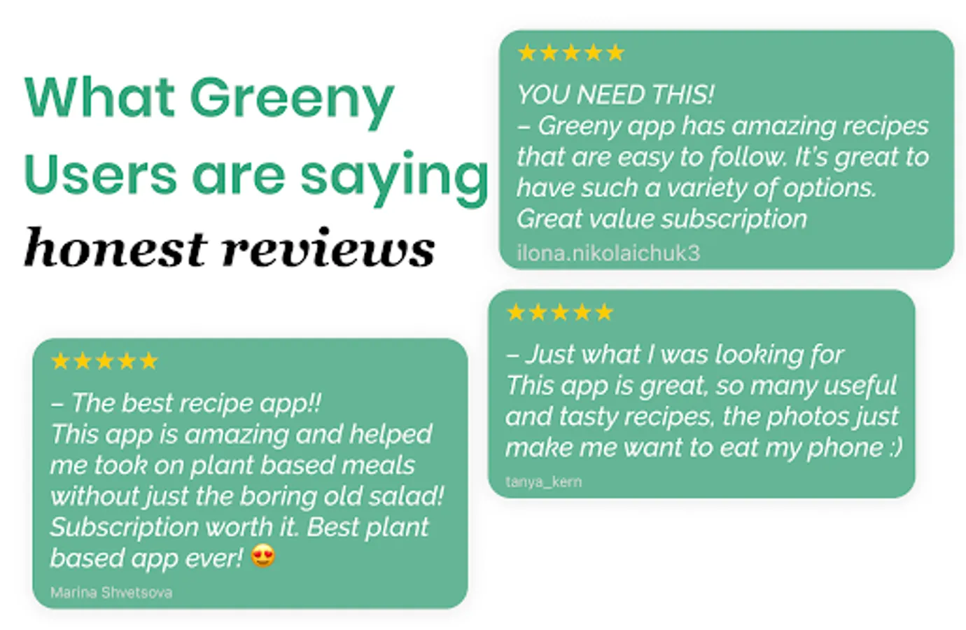 Greeny - it's a weight loss app with healthy food & ideas by the chef. Enjoy quick & easy home cooking from simple breakfasts to family dinners, gourmet desserts and vegetarian meals. You name it.