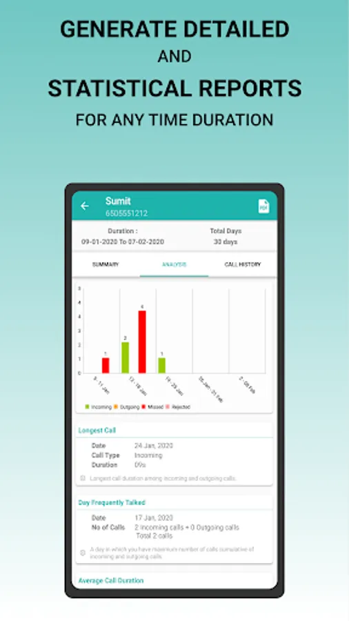 - Export analysis, statistics & call history as PDF report for any time