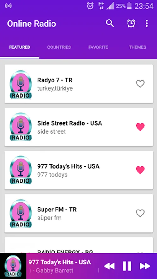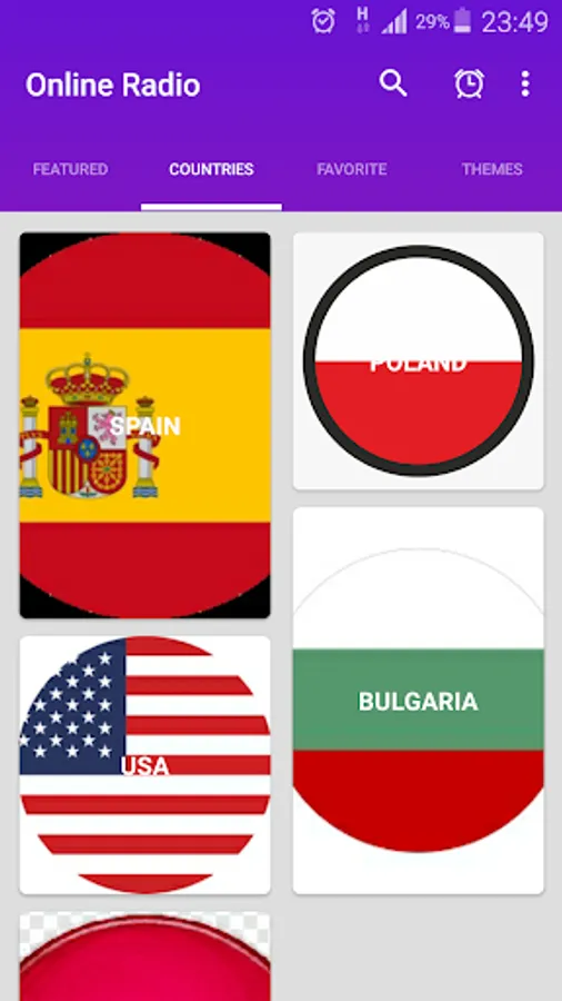 - You can choose any country from the Countries section and start listening to the radios of the countries you have selected.