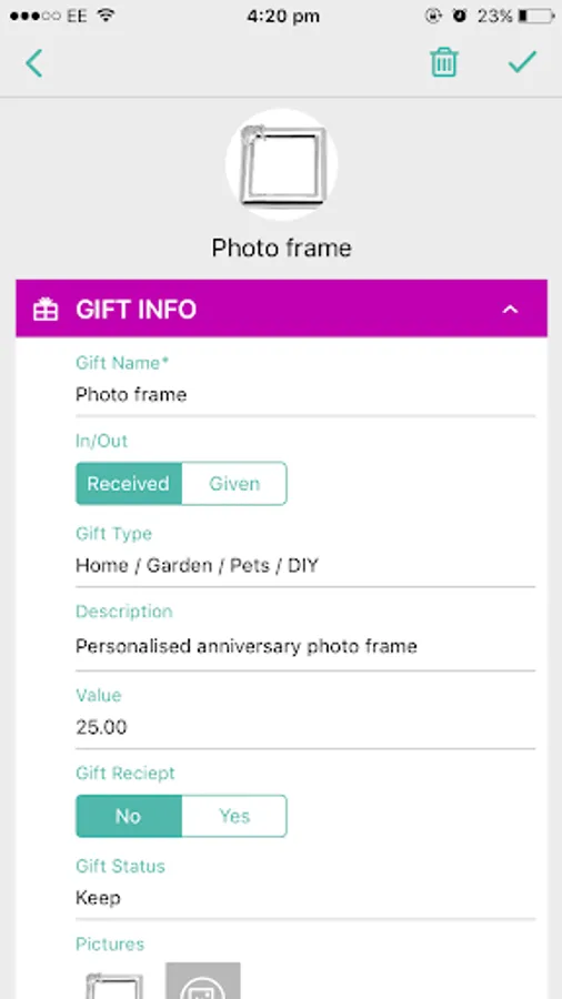 - Take photos of gifts you've received and given