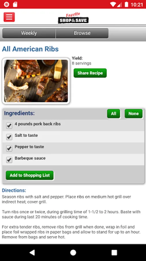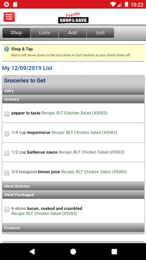 The Fayette Shop & Save app is your key to savings. Features include: digital coupons, weekly ads, recipes, shopping lists, your rewards points balance, track your progress for loyalty promotions, store mapping and information, and more.