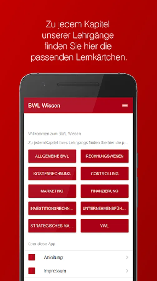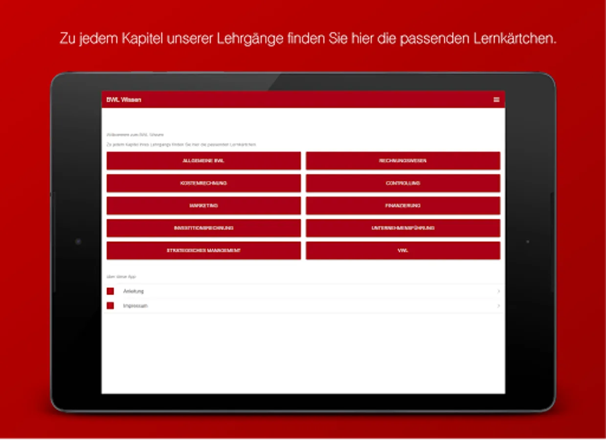 This app is intended to accompany the private study. There are polled the most important terms and formulas of the individual modules of our training.