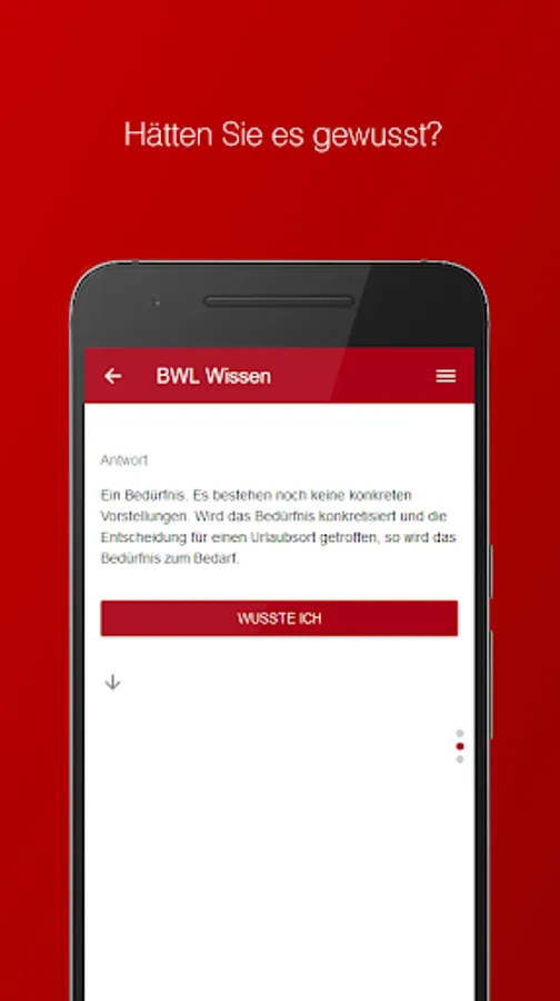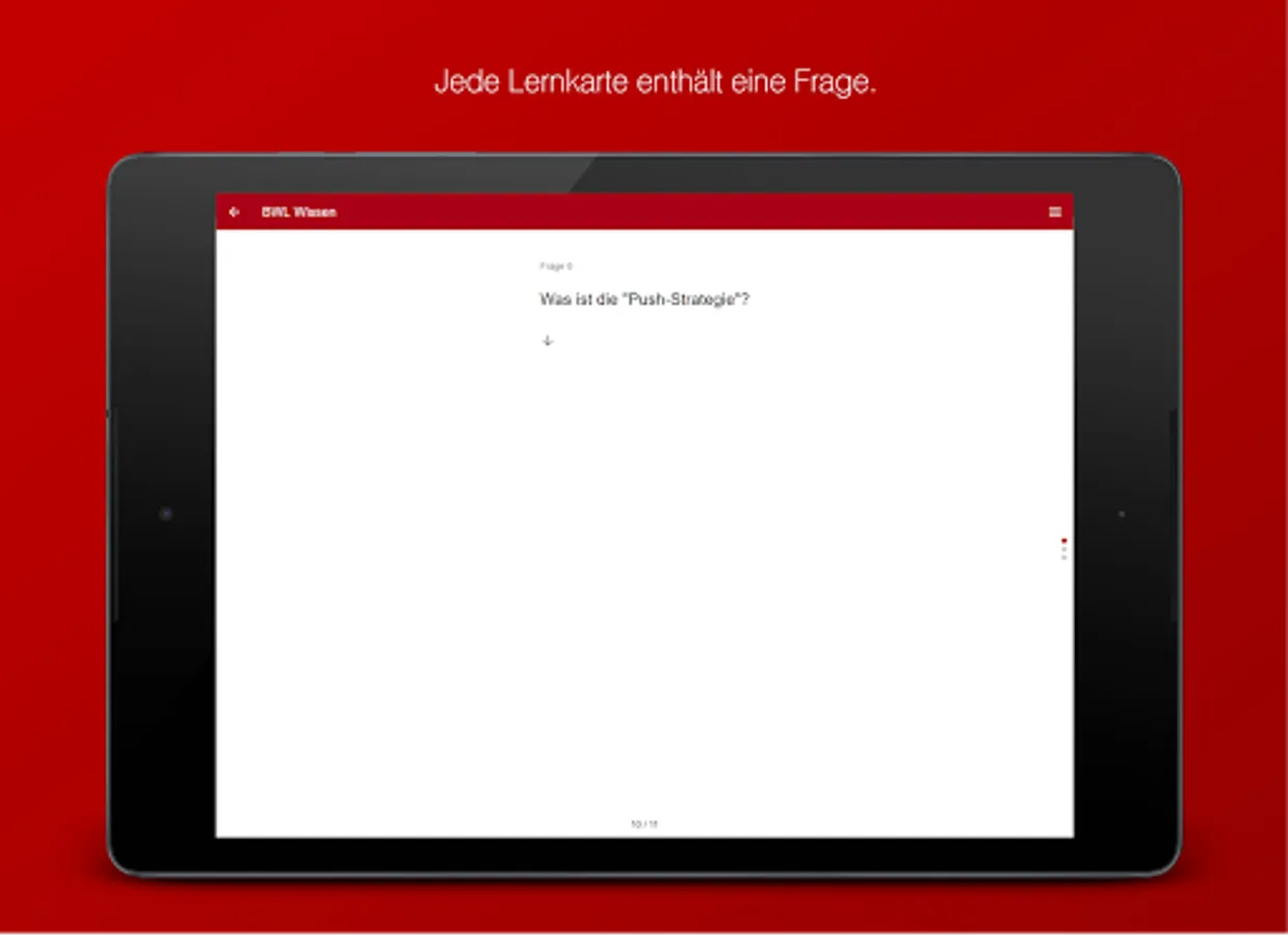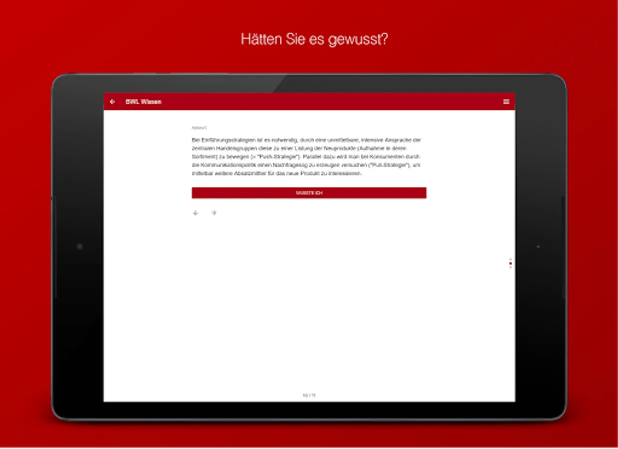 When you tap a field, you come to each question. it gives the answer as well as the source of the training materials for each question. There you can read up the answer in detail. Questions in which you are sure you can use "I knew" mark. These issues are then not evaluated again. However, you can re-enable such questions. On the Introduction page of each subject area, see the "all questions back to the stack." By tapping this button all questions will reappear. In this way you can specifically studying issues where you are unsure again.