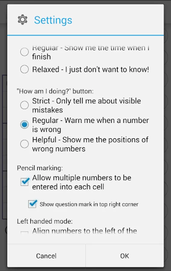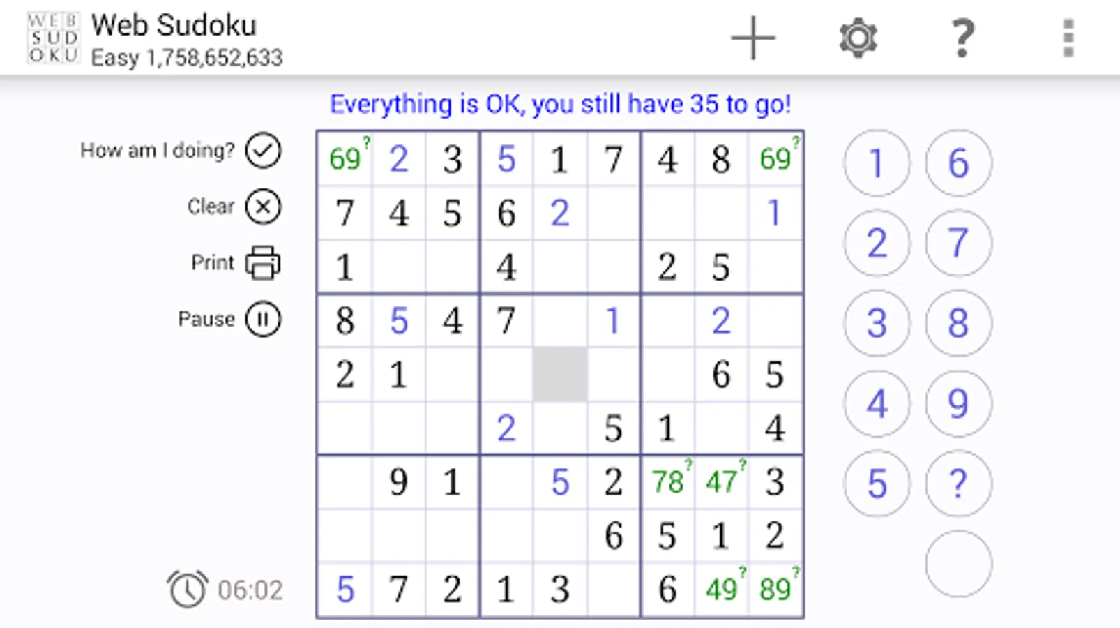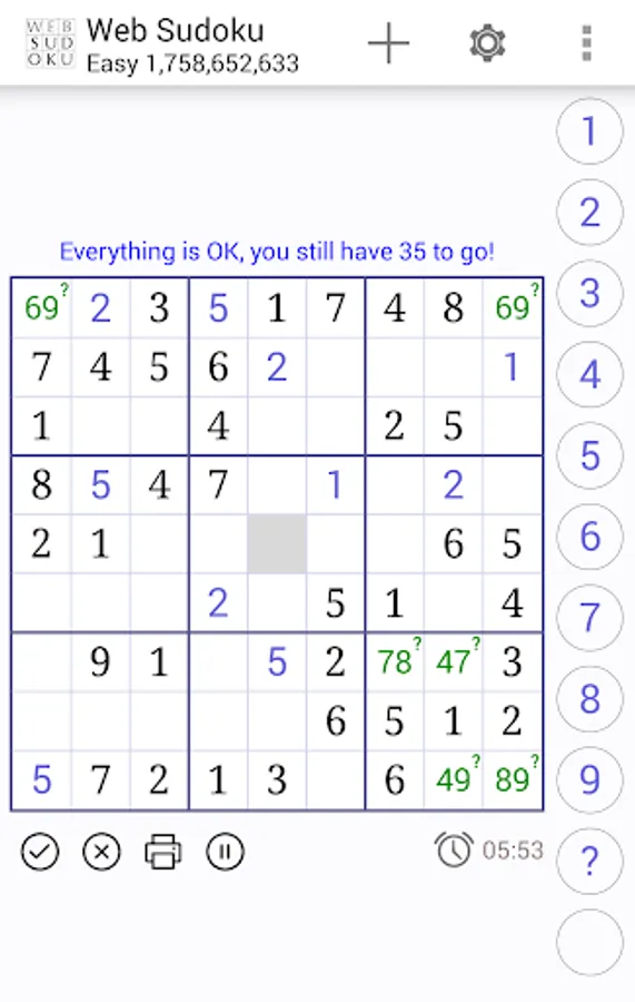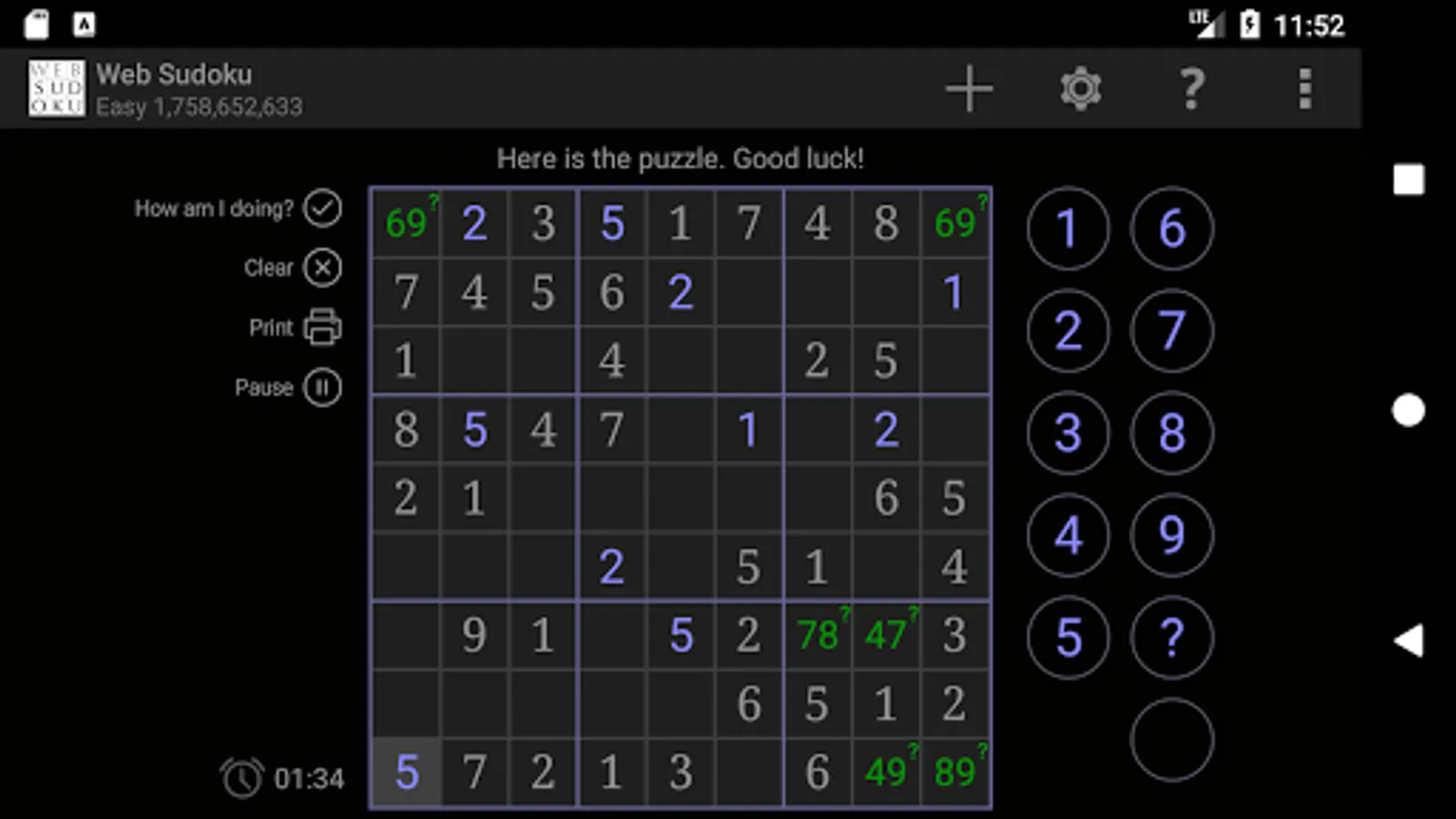 • 'Pencil marking' option for entering possible numbers in a cell.