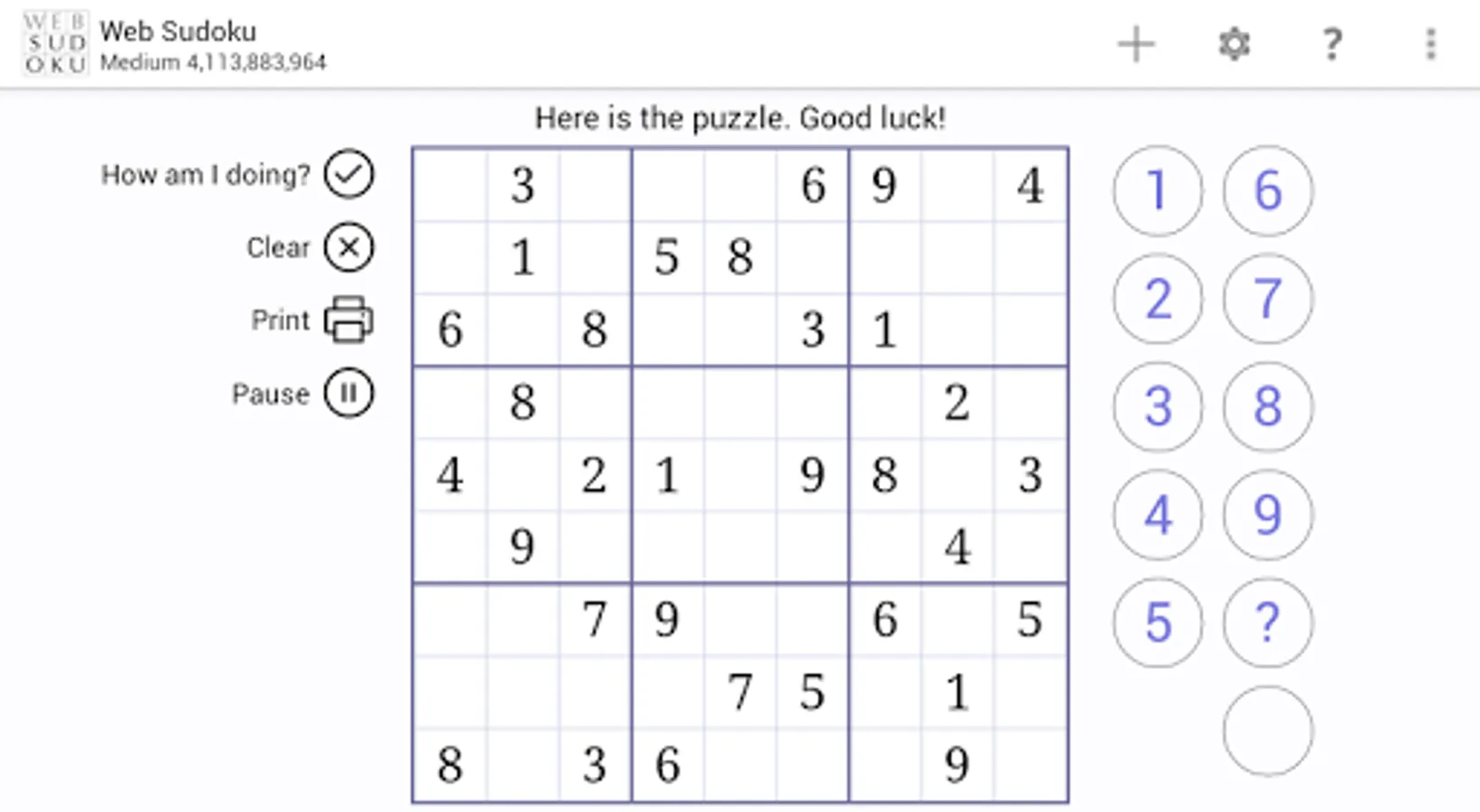 New from Web Sudoku - an app you can play offline on your phone or tablet.