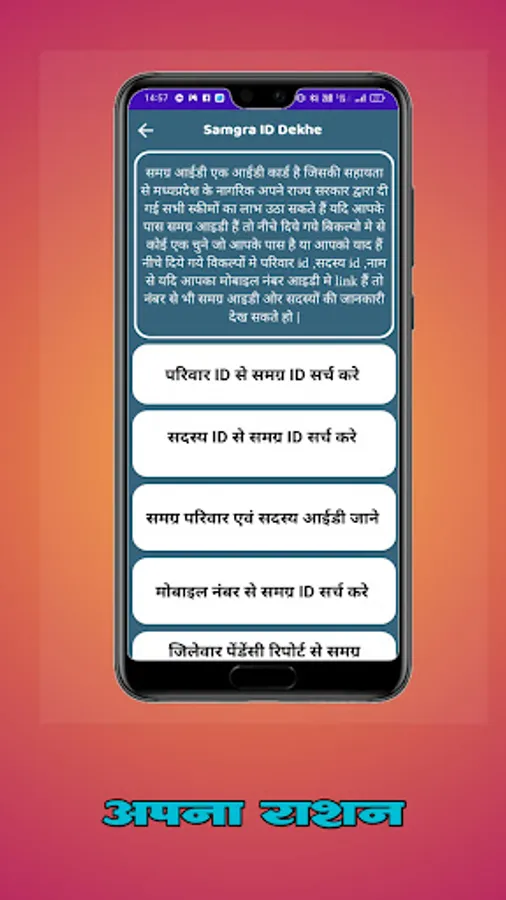 Samagra ID is such an ID through which the people of the state can take advantage of the government schemes being run by the government. Following the principle of “Sarvajan Hitaya Sarvajan Sukhay”, Madhya Pradesh Government is determined to provide easy, continuous and complete social security to all the residents of the society living in the state, according to their eligibility, the benefits of all government schemes. Search your overall ID. Search the Samagra ID of yourself and all the family members. Presently on the basis of Samagra ID on the Samagra portal various schemes such as scholarship (school), food at low rates under Public Distribution System (PDS), insurance, all pension schemes, marriage assistance, ex-gratia, National Family Assistance Scheme, Aam Aadmi Benefits of insurance and maternity leave assistance etc. are being given. The amount is being paid in the registered and verified savings accounts of the beneficiaries on the portal. With this, it has become possible to ensure transparency in beneficiary-oriented schemes and easily avail the benefits of the schemes. View your family's ration card information and ration eligibility slip on the Samagra BPL portal. Know your eligibility for ration. Along with this, see the information of all the Gram Panchayats of Madhya Pradesh and the information about the works of the Panchayat, see the name, caste, age, address, adding members in the overall ID, separate ID and every month's transaction.