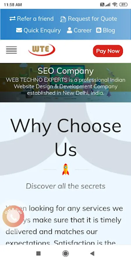 The WTE mobile App brings all the features of the company's website available on your android mobile to make things simple and easy. With this you could view the services offered, submit your queries, make online payment for the services desired and much more. We could take up any IT based assignments and deliver it successfully in time. At WTE our USP is that we provide solutions which is not just economical but efficient as well and needs low maintenance cost.