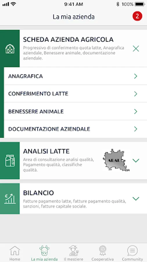 The Latteria Sociale Valtellina app is the tool that the cooperative makes available to all its members to monitor, compare and improve their business and increase relations and exchanges between breeders and associated farmers.